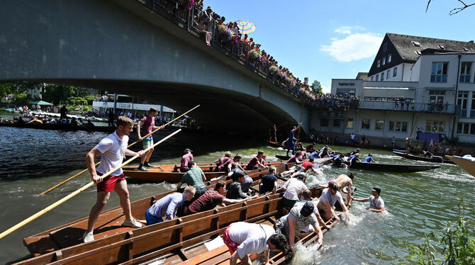 Das Stocherkahnrennen gehört zu den beliebtesten Veranstaltungen in Tübingen.