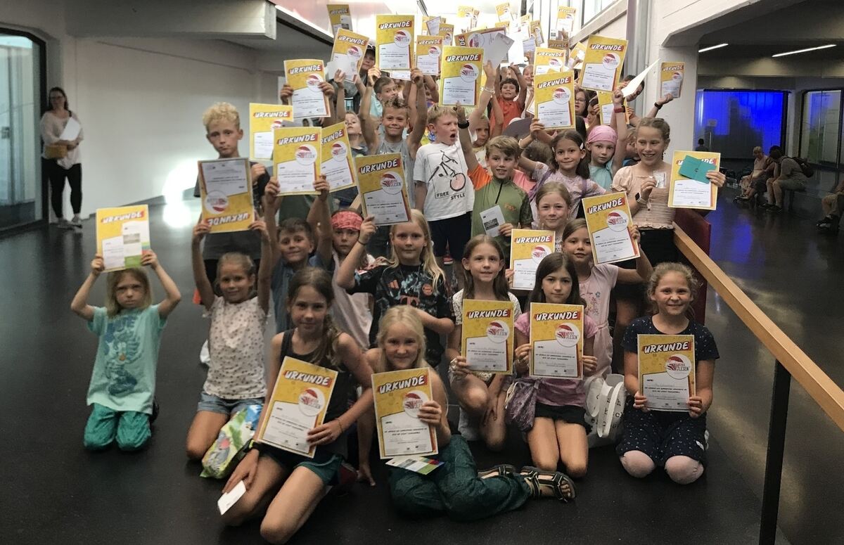 100 Clubmitglieder schafften es sogar, drei Bücher oder mehr während der Sommerferien zu lesen und bekamen aus diesem Anlass bei der Abschlussparty eine Urkunde überreicht. Insgesamt lasen die Mitglieder des Sommerleseclubs 357 Bücher während der Ferien – eine Leistung auf die sie stolz sein können und die es zu feiern galt. Für Unterhaltung sorgte während der Party der Zauberkünstler Hans-Peter Raggi.