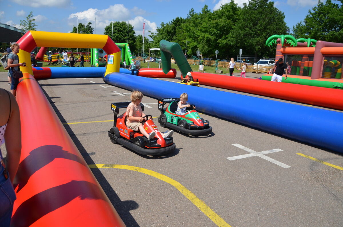 Mit Begeisterung dabei: Kartbahn für die Jüngsten beim Sommerfest in Gomaringen. FOTOS: GOERLICH