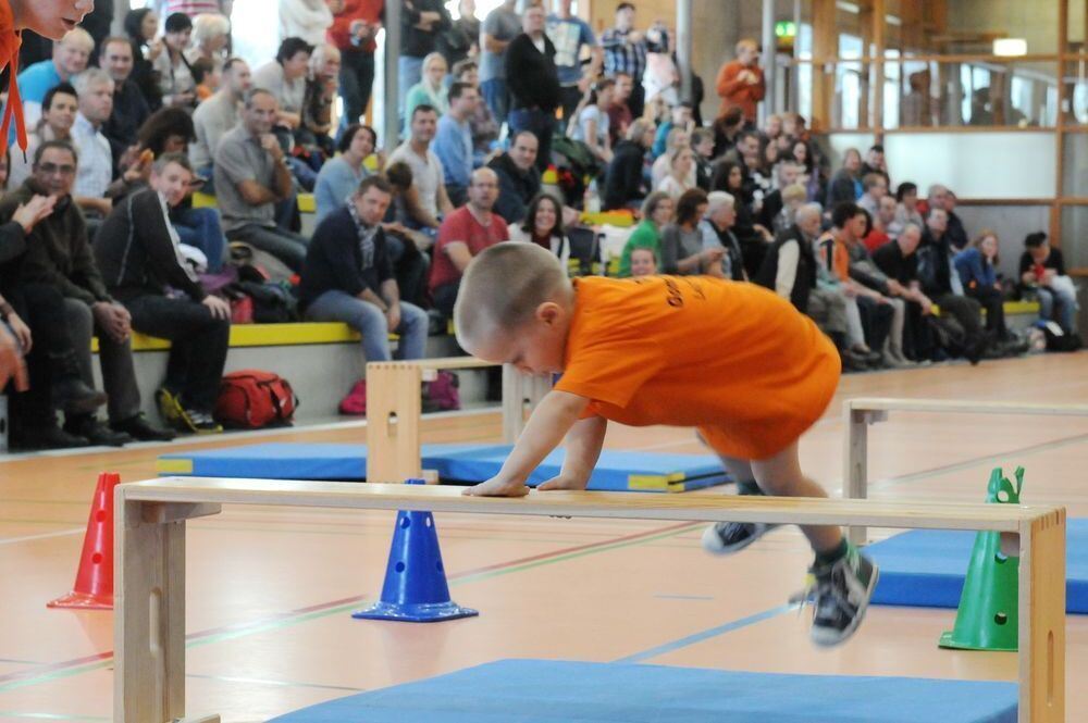 Marlon Metzger stand als jüngster Teilnehmer beim Kasten-Bumeranglauf im Mittelpunkt der Aufmerksamkeit. GEA-FOTO: MEYER