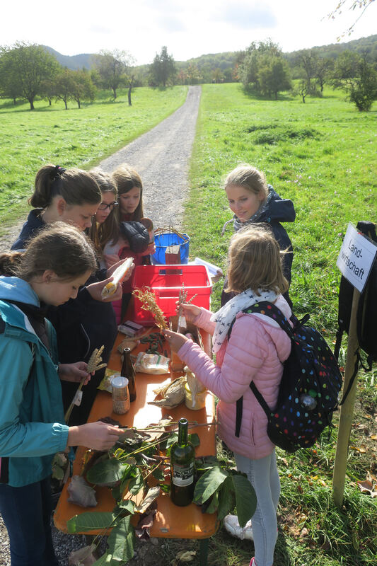 Die Rentiergruppe der FLG bei den Mössinger Umweltspielen. Sie schafften am drittenTag den Sieg. Hier mit der Lehrerin Julia Locher an der Station »Landwirtschaft«.FOTO: MERKLE
