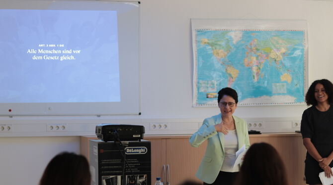 Die Gleichheit vor dem Gesetz erläuterte gestern Justizministerin Gentges vor Flüchtlingen in der Tübinger Erstaufnahme. FOTO: WALDERICH