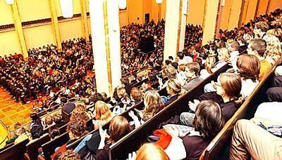 Begrüßung im Festsaal der Uni. Insgesamt liegt die Zahl der Studierenden wieder deutlich über 23000.