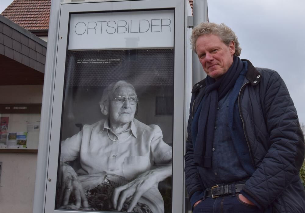 Stefan Hartmaier mit der ältesten Immenhausenerin im Schaukasten.