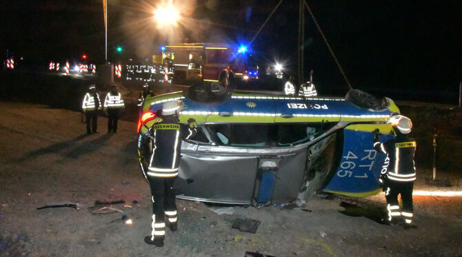 Zur Unterstützung war die Feuerwehr an die Unfallstelle ausgerückt. An dem Streifenwagen entstand wirtschaftlicher Totalschaden in Höhe von rund 60.000 Euro. Er musste mit einem Abschleppwagen geborgen werden. Der Fahrer, wie auch der Beifahrer, wurden schwer verletzt und vom DRK-Rettungsdienst in die Klinik verbracht. Die Strecke zwischen Tübingen und Weilheim war bis gegen 4.30 Uhr gesperrt. (GEA)