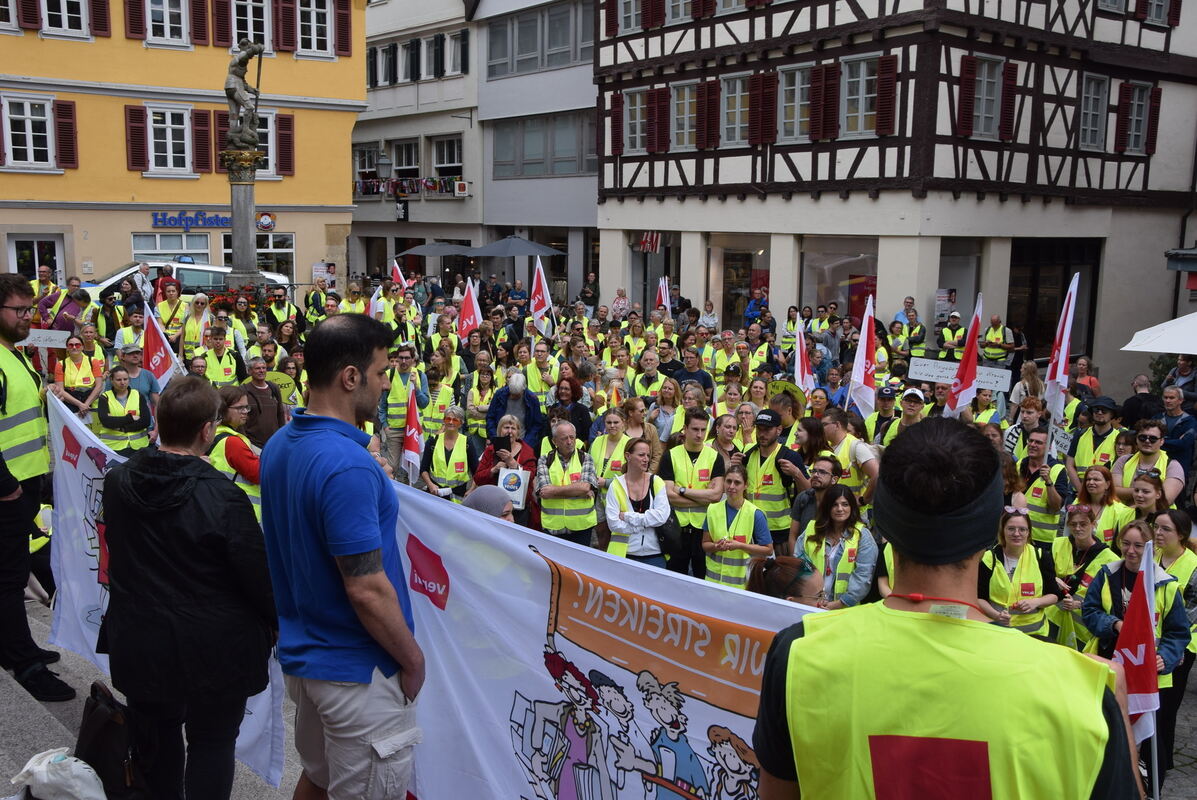Zur Kundgebung auf dem Tübinger Holzmarkt kamen mindestens 500 Beschäftige der Uniklinik.