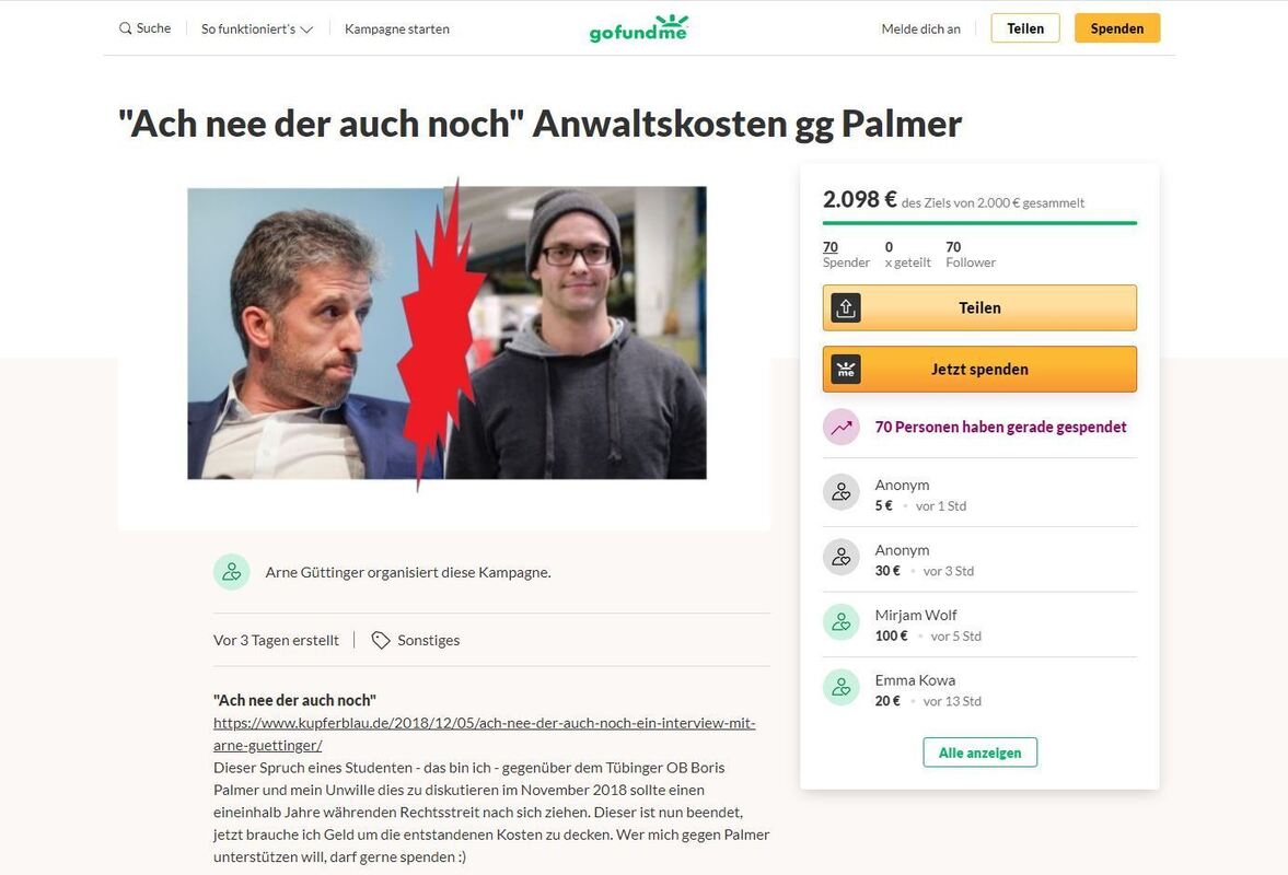 Streit mit Palmer: Student will Kosten für Anwälte mit Crowdfunding decken