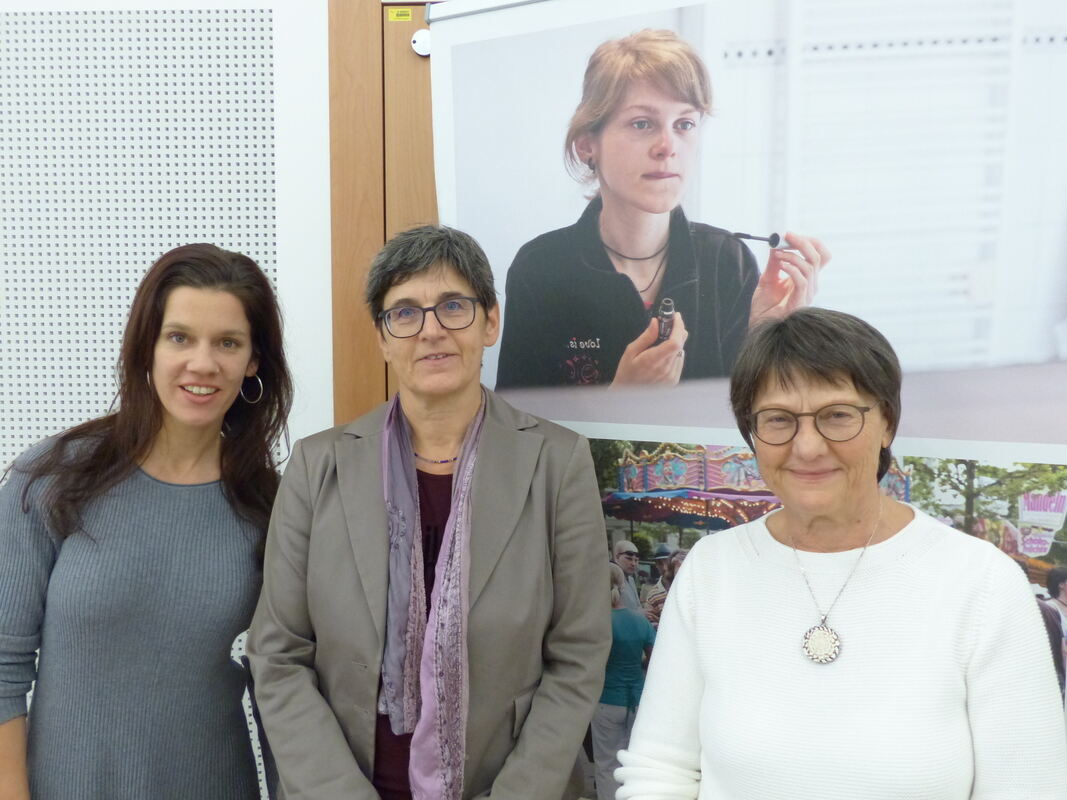 Was denkt das Mädchen, das von Rebecca Sampson fotografiert wurde? Auch dieses Bild nehmen Sarah Heuberger, Regine Kottmann und Katharina Zeller (von links) von der Beratungsstelle Lebenshunger der Tübinger Initiative für Mädchenarbeit (Tima) mit in die Schulen, zur Prävention von Essstörungen. FOTO: WEBER