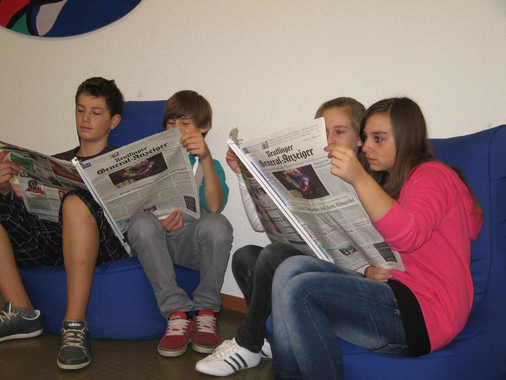 Am liebsten gemeinsam in der Sitz-Ecke: (von links) Kastriot Lokaj, Hannes Futter, Bianca Hilz und Maren Labitzke in der Burghof-Schule in Ofterdingen sind eifrige Nutzer des Angebots.