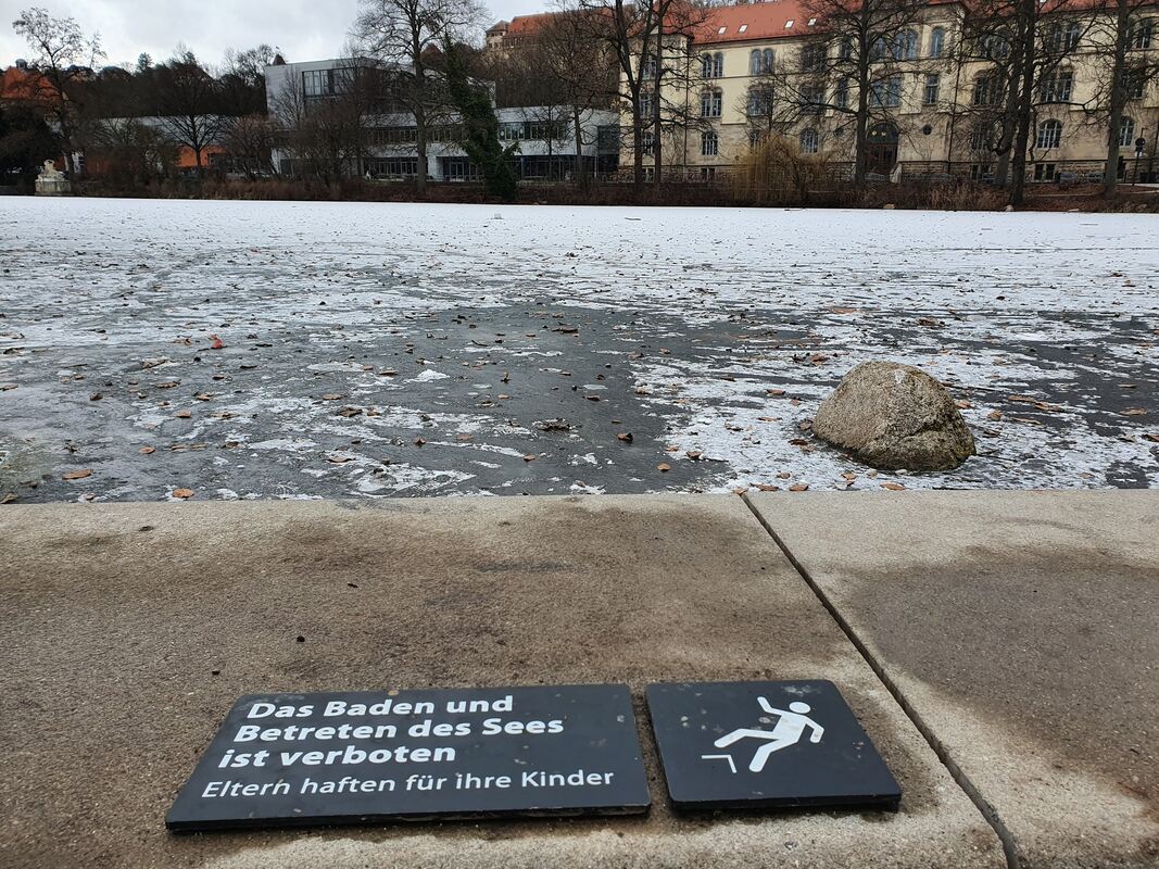 KIRCHENTELLINSFURT/TÜBINGEN. Der Winter hat die Region fest im Griff – und auch die Seen sind schon zugefroren. Auf dem Tübinger Anlagensee waren bereits unvorsichtige Menschen zu beobachten, die ihr Neujahrsglück gleich ausreizen wollten – denn von einer sicher tragfähigen Eisfläche sind die Seen noch ein ganzes Stück entfernt, weshalb auch die Wasserretter der Deutschen Lebensrettungsgesellschaft (DLRG) aktuell davor warnen, die Eisflächen zu betreten; es herrsche Lebensgefahr.