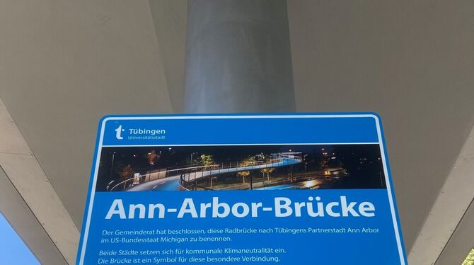 Die Radbrücke West hat einen neuen Namen: Am Donnerstag wurde die »Ann-Arbor-Brücke« feierlich eingeweiht - nach der amerikanischen Partnerstadt von Tübingen.