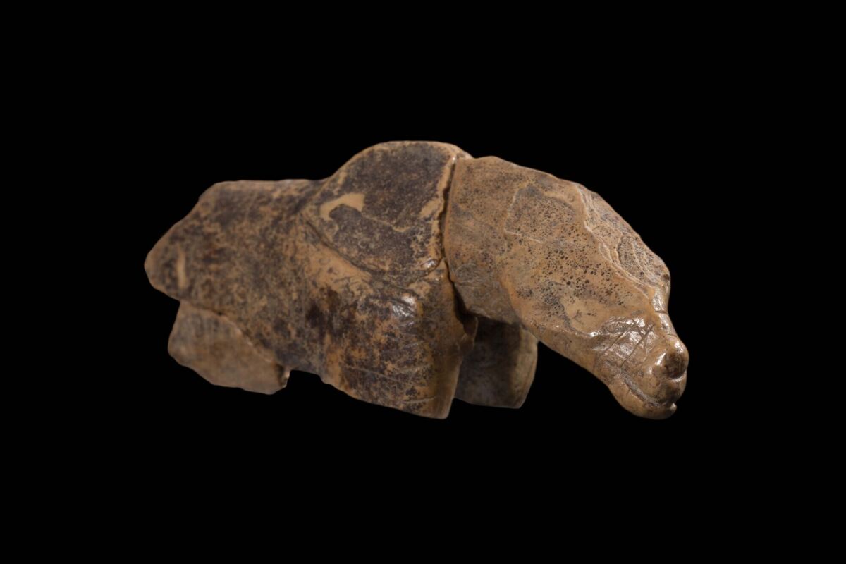 In der Höhle hatten die Ausgräber bereits 1999 eine Elfenbeinschnitzerei entdeckt und als Schädel eines Pferdes interpretiert. Der »Fund des Jahres« wirft ein neues Bild auf die Sache. Das Fragment passt ohne Zweifel zum »Pferdekopf« und verbindet andere Fragmente mit dem ersten Fund. Die jetzt fünf Puzzleteile zusammengenommen, wird aus dem Pferd ein Bär: mit dem typischen Bärenbuckel und dem massigen Körper und in einer Körperhaltung, die den trottenden Gang eines Bären zeigt.