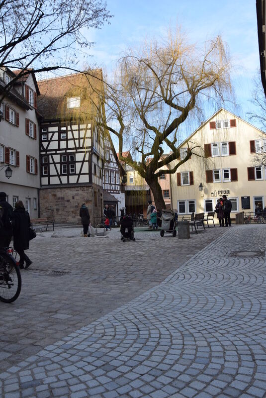 Neu gepflastert, mit Bänken und Spiel-Möglichkeiten: Der kleine Platz in der Metzgergasse. 1 200 Unterzeichner hatten sich gegen die Umgestaltung ausgesprochen. Bei einer repräsentativen Umfrage war die Mehrheit jedoch dafür. FOTO: KREIBICH