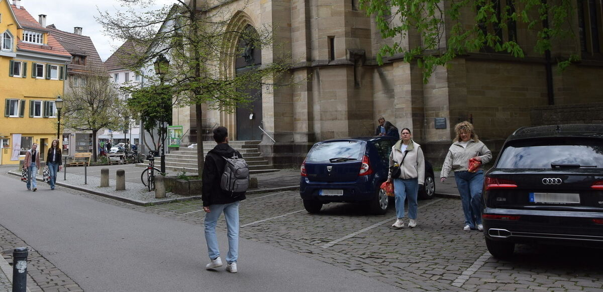 Eine der wenigen Stellen, wo es noch Parkplätze hat in der Altstadt: Die Froschgasse vor der Johanneskirche. Der Parksuchverkehr soll aus der Altstadt verbannt werden.