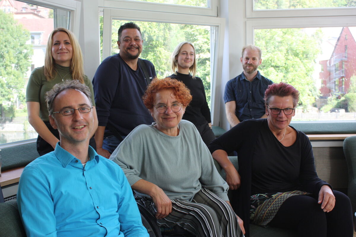 Von der Aktion »nachtsam« (hinten von links): Daniela Harsch, Kutay Nergues (Stadtpost), Laura Schmidt, Thomas Feger (beide Freistil). Vorne: Armin Krohe-Amann (Pfunzkerle), Borghild Strähle (adis), Micha Schöller (städtische Koordinatorin). FOTO: STURM