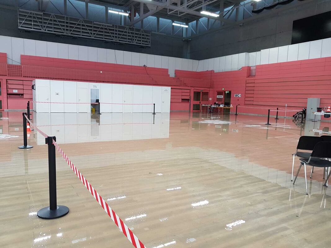 TÜBINGEN. Das Unwetter am 23. Juni hat die Region stark erwischt. Auch das Impfzentrum in der Paul-Horn-Arena musste kurzfristig geschlossen werden. Der Boden war von den Wassermassen so durchnässt, dass dieser zunächst innerhalb von zwei Wochen provisorisch ausgetauscht werden musste, damit der Impfbetrieb weitergehen konnte. Seit rund zwei Monaten ist das Impfzentrum nun geschlossen und die vollständige Sanierung der Arena läuft.