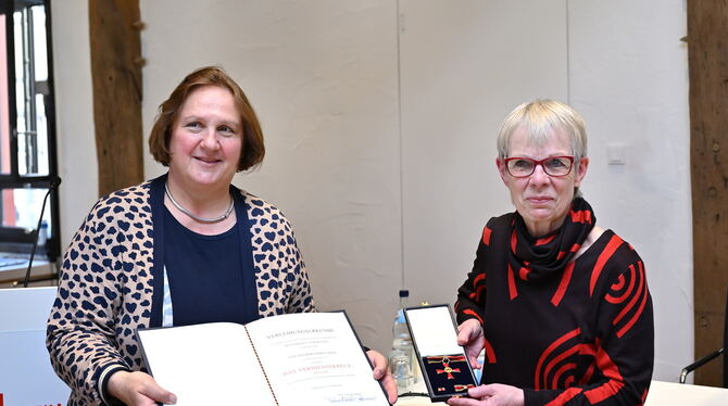 TÜBINGEN. Zum Auftakt spielte das Posaunenduo Birger und Jascha Hass die Eurovisionshymne. Durchaus angemessen, wie Oberbürgermeister Boris Palmer feststellte, reiche die Bedeutung des Anlasses doch weit über Tübingen hinaus: Für ihr langjähriges ehrenamtliches Engagement wurde Ingeborg Höhne-Mack gestern das Bundesverdienstkreuz verliehen.