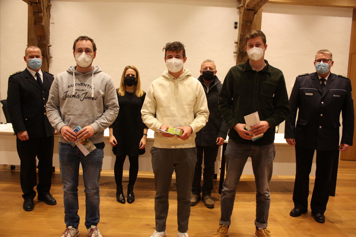 Ehrung im Rathaus: Die drei Retter im Vordergrund (von links) Benedikt Reinert, Paul Zimmermann und Jakob Simminger. FOTO: STURM