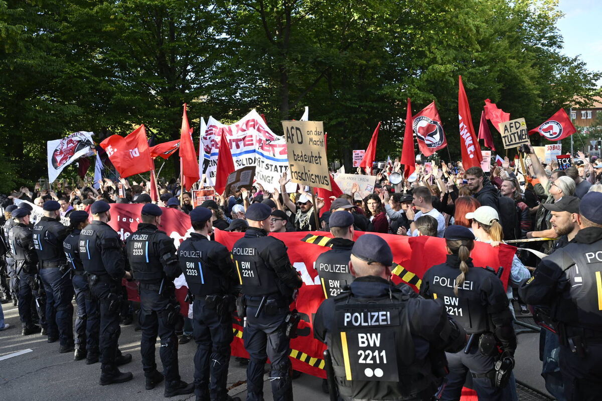Die Polizei hält die Antifa mit einem Großaufgebot davon ab, zur Hepper-Halle vorzudringen. Dank massivem Aufgebot der Einsatzkräfte gelingt das auch. Das kostete den Steuerzahler allerdings 404.000 Euro.
