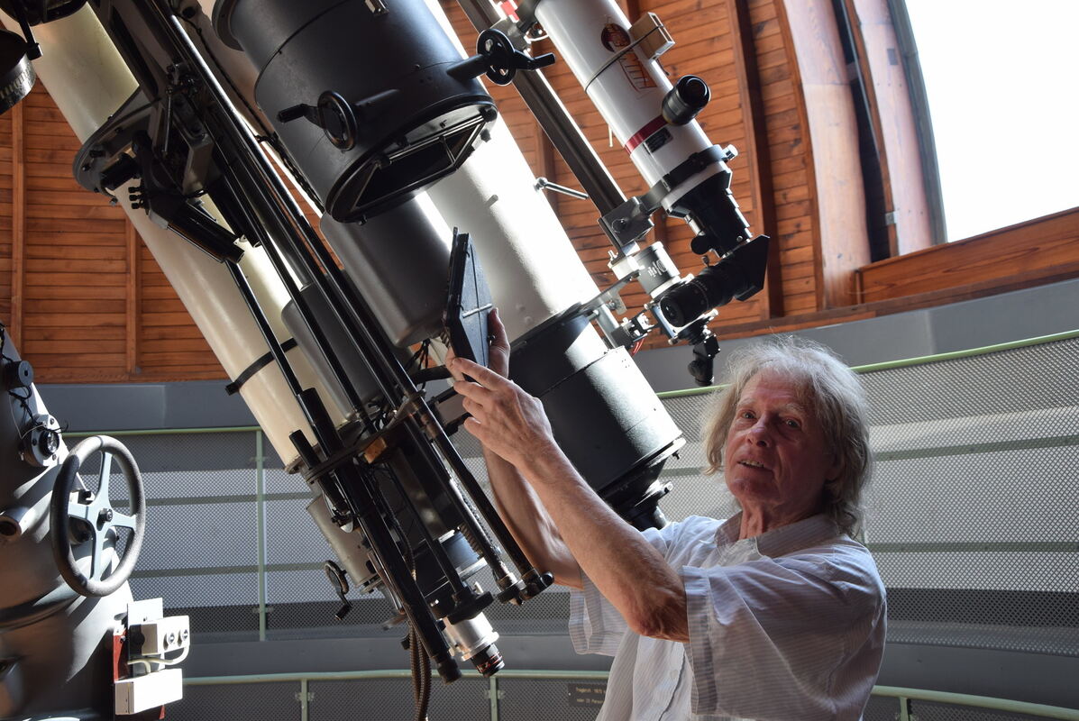 Sechs Meter lang ist der Refraktor bei einer Brennweite von fünf Metern. Wolfgang Wettlaufer dreht das riesige Rohr problemlos an einer Stange in Position. Auch nach hundert Jahren laufe es leichtgängig ohne zu quietschen, sagt Wettlaufer von der Astronomischen Vereinigung. Er muss es wissen. Schließlich kennt er das Teleskop seit Jahrzehnten. Am 9. Februar 1989 entdeckte er mit dem Fernrohr eine Supernova im Spiralnebel M 66, etwa 27 Millionen Lichtjahre von der Erde entfernt.