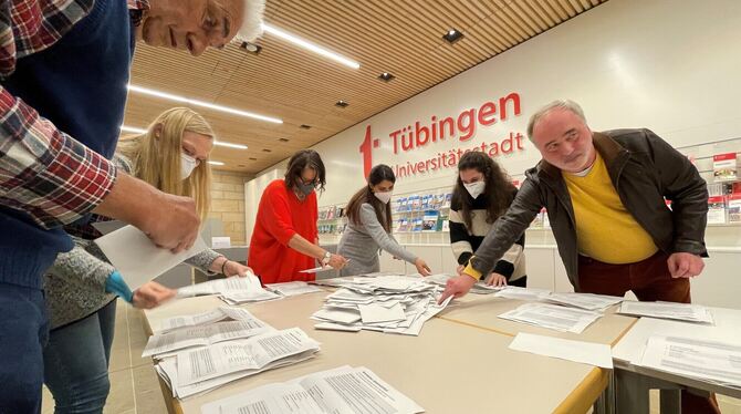 In der 90.000-Einwohner-Stadt waren 69.000 Menschen wahlberechtigt. Bereits gegen 15 Uhr sind mehr Stimmen abgegeben worden als 2014 (55 Prozent). Am Ende lag die Wahlbeteiligung bei 62,6 Prozent - ein starker Wert für eine Oberbürgermeister-Wahl. Als »sensationell« und eine »Hochburg der Demokratie« bezeichnete es Palmer. Zum Vergleich: Als sich Thomas Keck 2019 in Reutlingen durchsetzte, gaben 40,2 Prozent der Wahlberechtigten ihre Stimme ab.