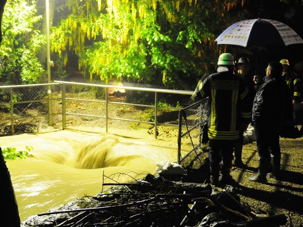 Mössingens OB Michael Bulander schaut sich die Lage beim Geißbach an.
