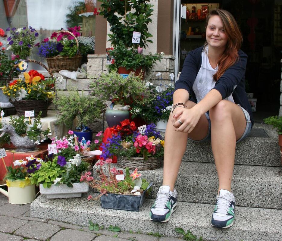 Seit die Talheimer Steige gesperrt ist, fehlen den Einzelhändlern die Kunden. Alina Geiser zeigt sich zuversichtlich, sie hilft im Blumenladen ihrer Mutter mit.