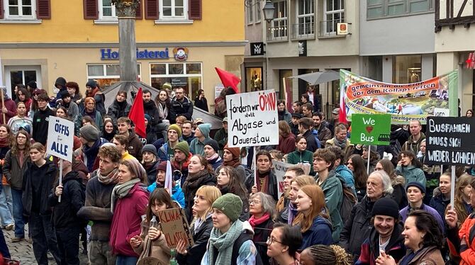 Neben besseren Arbeitsverhältnissen für Busfahrer forderten die Organisatoren ein kostenloses Deutschlandticket für Rentner, Schüler und Studierende sowie Besitzer einer Kreisbonuscard. Für alle anderen Tübinger wurde ein Preis von 15 Euro vorgeschlagen. (pru)