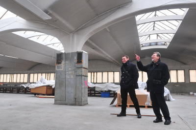 Auftakt zur großen Sanierung der Tonnenhalle: Mössingens Stadtbauplaner Gebhard Koll (rechts) und Architekt Michael Frank im Obergeschoss der ehemaligen Stofffarbdruckerei der Firma Pausa. In zwei Jahren soll der Umbau abgeschlossen sein.
