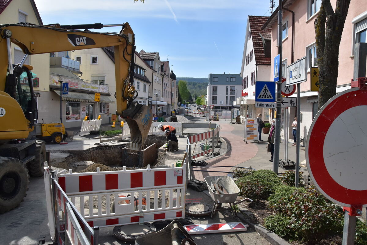 MÖSSINGEN. Gewohnheiten sind schwer zu ändern. Wer sich an den durch die Bauarbeiten in der Stadtmitte eingerichteten Kreisverkehr gewöhnt hat, muss sich erneut umstellen. Denn die Falltorstraße zwischen Sulzgasse und Bahnhofstraße ist nun voll gesperrt. Das Schild Sackgasse haben wohl noch nicht alle registriert, die dort langfahren. »Wir haben auf Vorschlag der Firma Flammer die eigentlich für Herbst geplanten Tiefbauarbeiten vorgezogen«, sagt Mössingens Baubürgermeister Martin Gönner. Auf diesen Vorschlag habe es eine positive Resonanz bei den Einzelhändlern gegeben, die lieber jetzt als im Herbst, wenn es hoffentlich wieder mehr Normalität gibt, mit den Einschränkungen leben wollen. Der Zugang zu allen Geschäften sei weiterhin gewährleistet, betont die Stadtverwaltung.