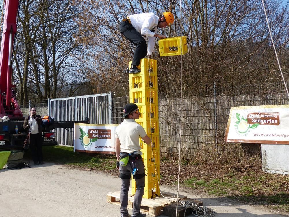 Tübingen ist nicht Babel: Aber OB Boris Palmer zeigte auch beim Kistenbau, dass er hoch hinaus will. FOTO: RAPHAELA WEBER