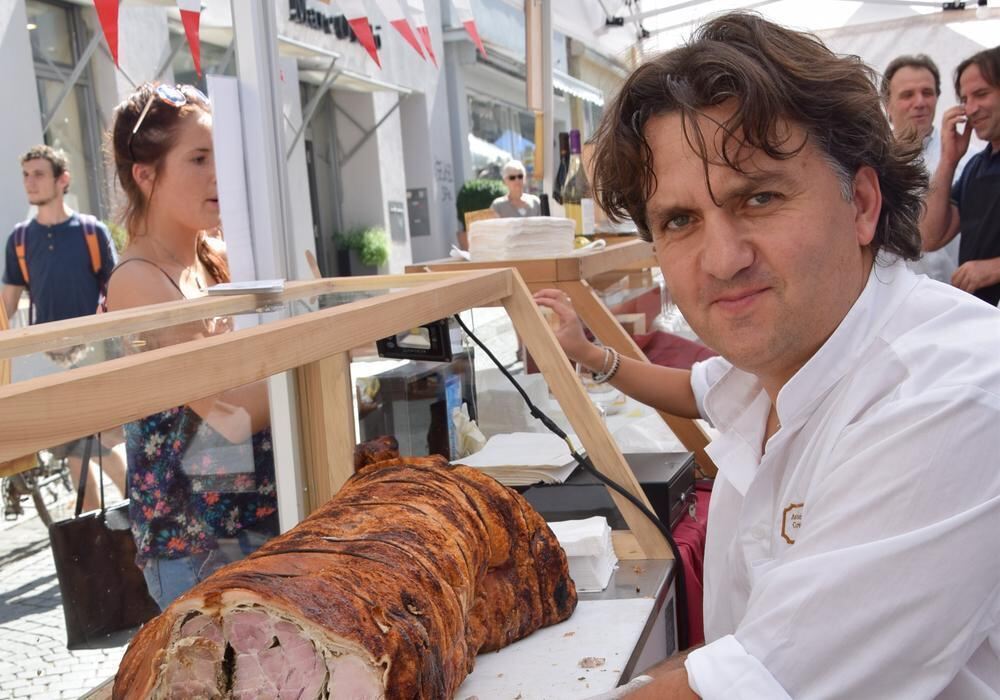 Einer von vielen, die gerne immer wieder kommen: Alessandro Granieri bietet Spanferkel.