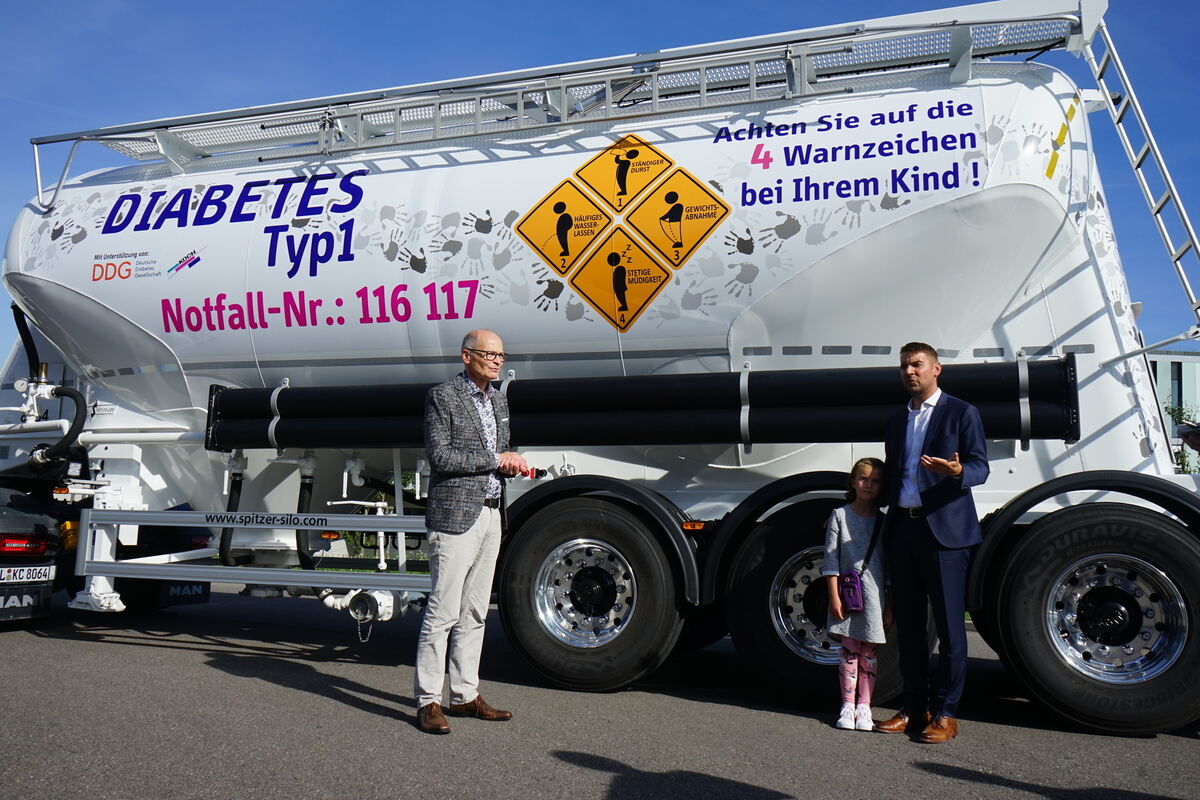 »Sie ist lachend in die Klinik rein und lachend wieder raus«, erzählte Andreas Koch. Er habe viele andere Schicksale gesehen, die im Rettungswagen und im Hubschrauber gebracht wurden. Deshalb war für ihn gleich klar, dass er sich an der Aufklärungskampagne beteiligt. Auf einem seiner Tanklaster sind nun vier Warnzeichen abgedruckt, die darauf hinweisen können, dass ein Kind an Diabetes Typ 1 erkrankt sein könnte: ständiger Durst, Gewichtsabnahme, stetige Müdigkeit, häufiges Wasserlassen.