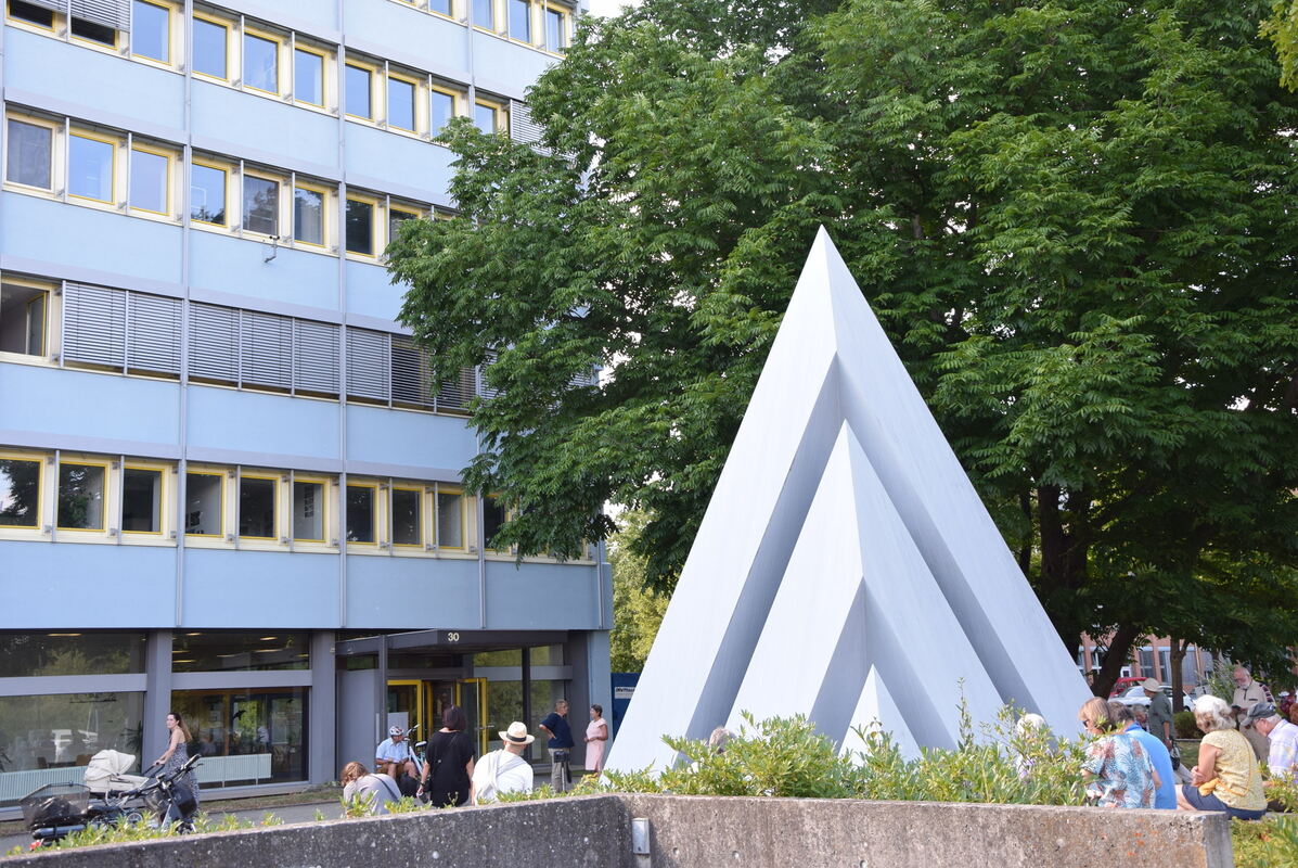 Die Pyramide vor dem Polizeirevier ist eigentlich ein von innen beleuchteter Brunnen.