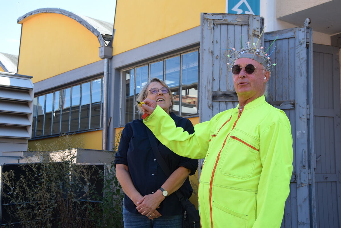 Künstler Serge Le Goff bei der Schlüsselübergabe für die Shedhalle zusammen mit Kulturamtsleiterin Dagmar Waizenegger.
