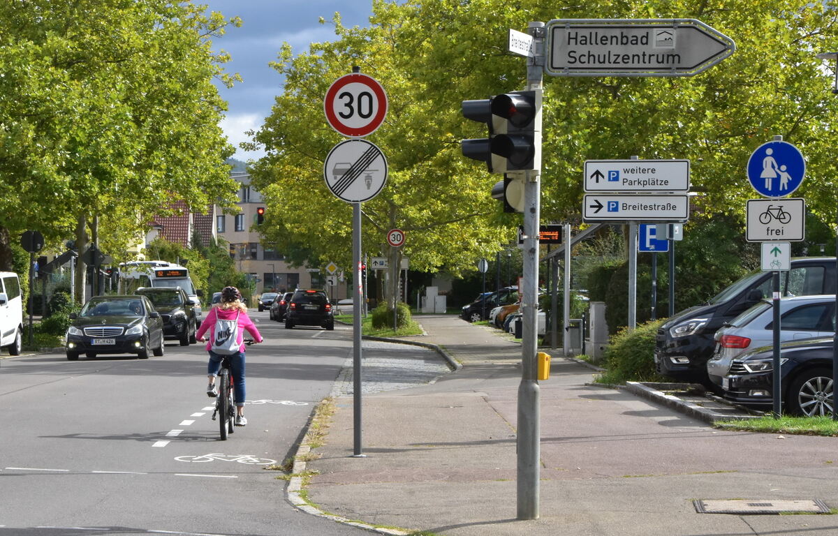 Sehr selten im Landkreis Tübingen: Überholverbotsende-Verkehrszeichen in der Ortsmitte