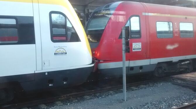 Nach dem Aufprall standen die beiden Zugteile so eng beieinander, dass von den Kupplungseinrichtungen nichts mehr zu sehen war.
