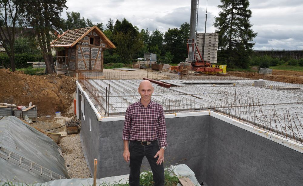 Matthias Bader vor dem Fundament des nach den Vorstellungen seines verstorbenen Vaters geplanten Restaurants. FOTO: PANZRAM