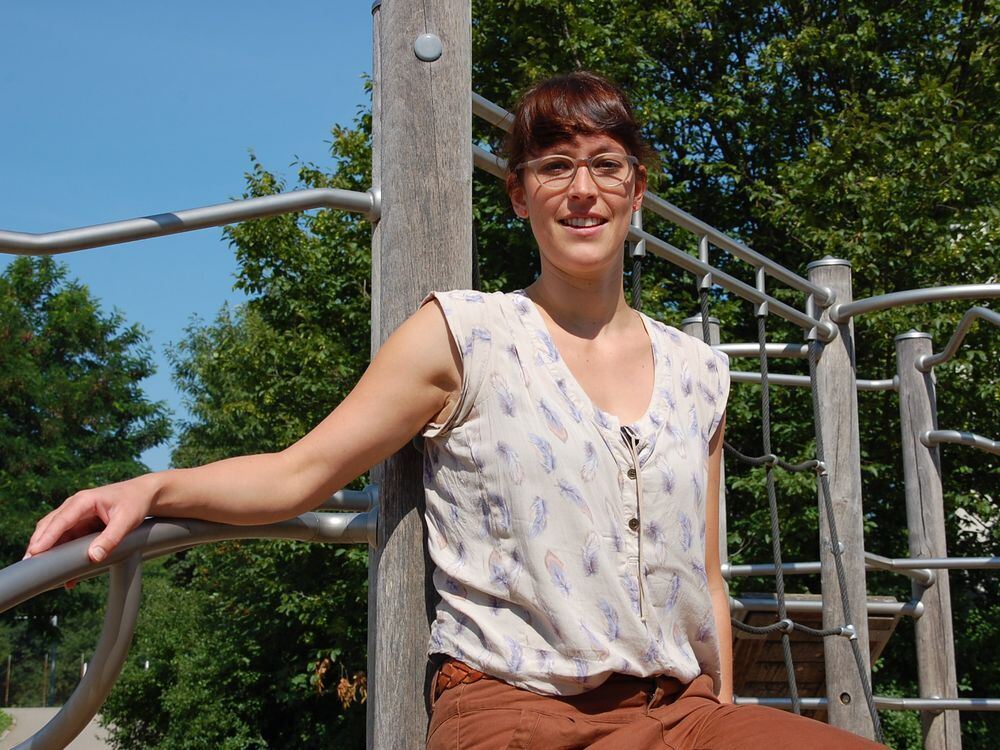 Janine Linßer auf dem Schulhof der August-Lämmle-Schule.