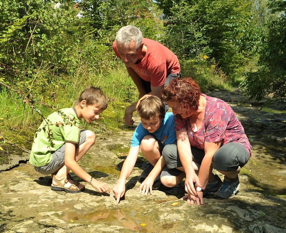 Eine der Attraktionen: Roland Nehk und Sabine Häusler mit Sohn und einem Nachbarsjungen beim »Schnecken-Pflaster« in der Steinlach in Ofterdingen.