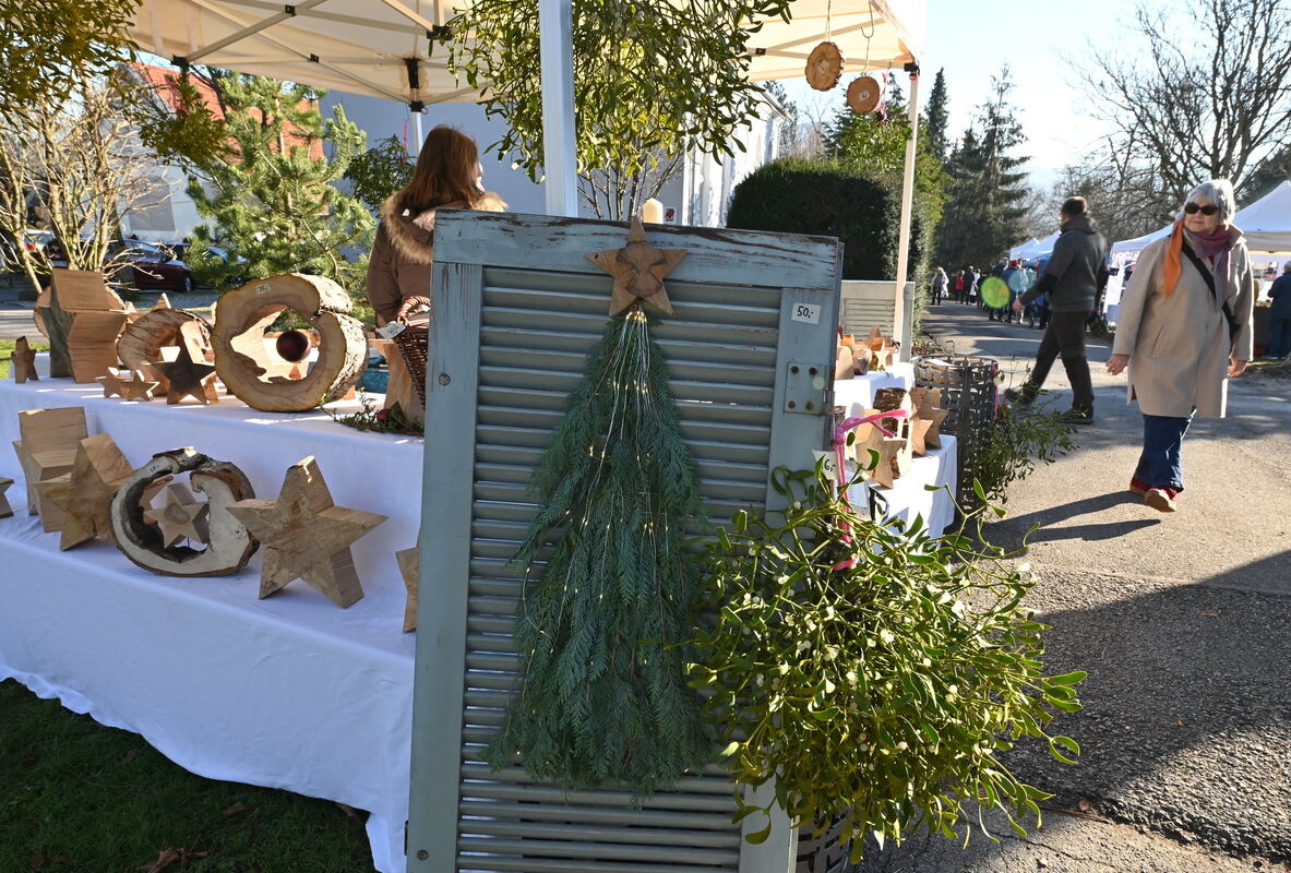 Weil das von Maria Funk und Ingrid Blaich seit gut 20 Jahren erfolgreich organisierte und stets gut besuchte Hobbykunst-Forum ausschließlich hochwertige Waren feilbietet, kann man freilich auch keine Flohmarktpreise erwarten. Für 16 Euro konnte man einen Zweig dieses Raubsaugers erwerben. Beliebter war dann doch eines der unzähligen Geschenkideen zu kaufen, Getöpfertes, Gefilztes, Gemaltes, Holzkunstwerke oder – last Minute – eben Adventskränze. Und es hätten rund um das volle alte Café und Andreas Felgers Atelier noch viel mehr sein können, aber ein Viertel der geplanten 54 Standbetreiber, darunter einige Neulinge, musste krankheitsbedingt an diesem schönsten Dezemberauftakt seit Langem absagen. (mey)