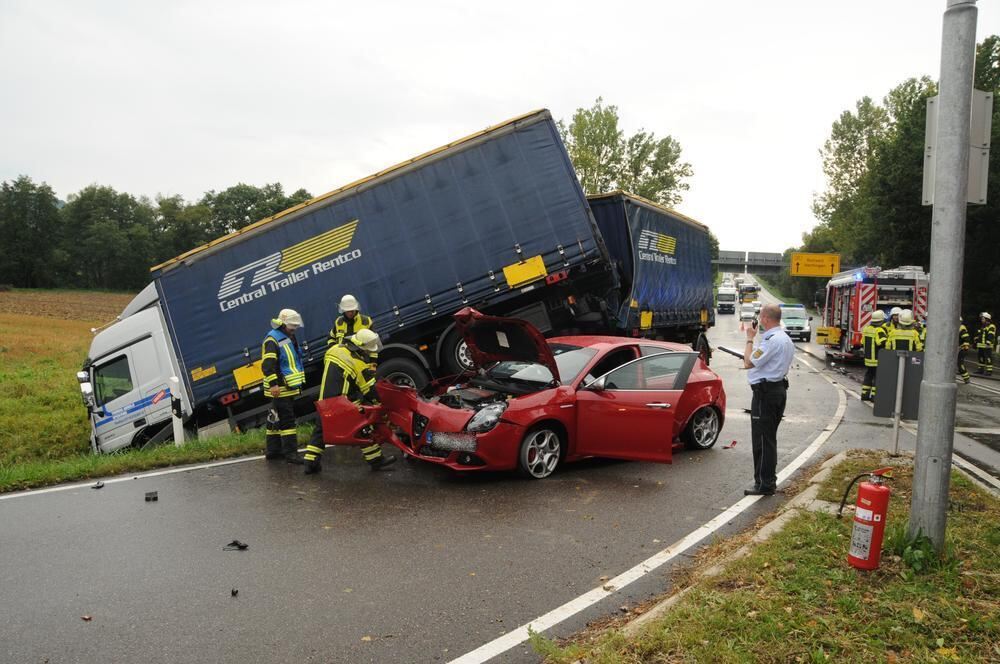 Der Vierzigtonner aus dem Kreis Esslingen prallte erst auf einen VW, und touchierte dann noch ein zweites Fahrzeug.