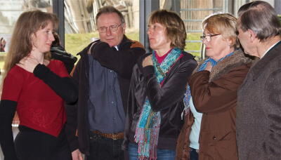 Susanne Beckmann (links) zeigt, wo's hakt: Das Volksleiden Verspannung muss zuerst einmal erfühlt werden.
