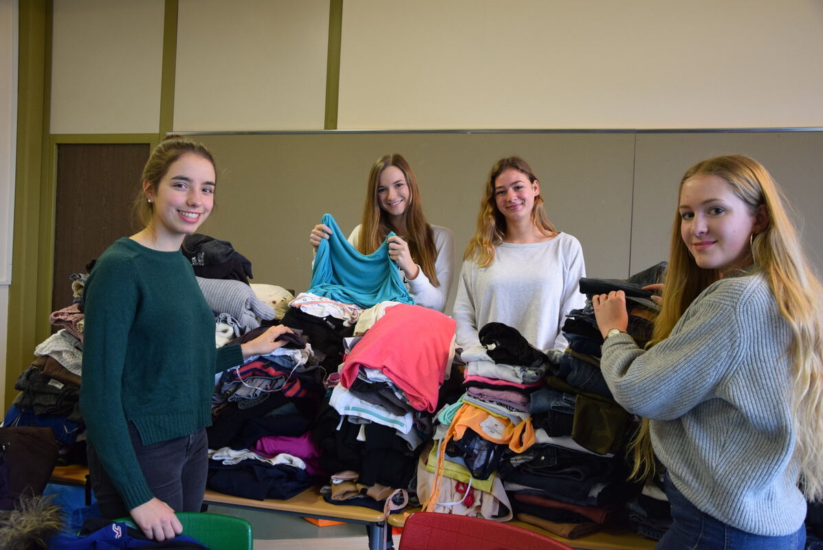 Jede Menge Material haben die Firstwaldschülerinnen Lea Salzer, Isabelle Walker, Carla Rautenberg und Franziska Grüninger (von links) für ihren Flohmarkt am Samstag gespendet bekommen. FOTO: STÖHR