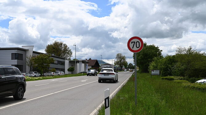 Wo heute noch in Nehren eine Höchstgeschwindigkeit von 70 Stundenkilometern gilt, soll künftig Tempo 50 gelten. Die meisten nachts von Fahrzeuglärm betroffenen Gebäude liegen hinter dem Gebüsch rechts im Bild.