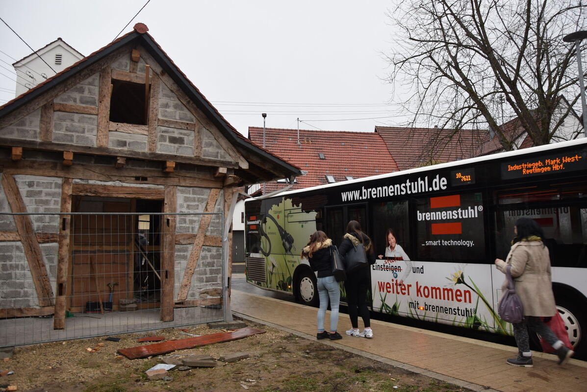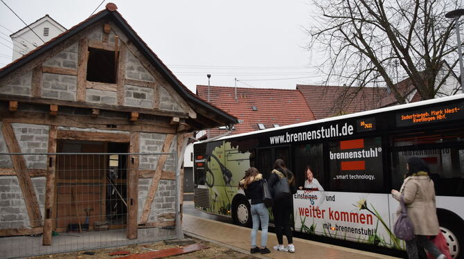 »Da steckt jede Menge Eigenleistung drin«, sagt Ortsvorsteher Günter Brucklacher. Vor allem Zimmerer Armin Knoblich und er selbst haben je weit über 100 Arbeitsstunden investiert, um eine Bushaltestelle der besonderen Art anzulegen. Nun ist auch das Dach des Fachwerkwartehäuschens gedeckt, die Umgestaltung in der Jettenburger Ortsmitte ist fast abgeschlossen. (GEA)