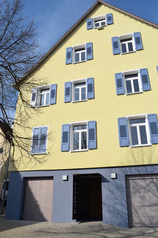 Die Fassade des 1824 gebauten und in direkter Nachbarschaft zur gotischen Jakobuskirche stehenden Wankheimer Rathauses ist jetzt wärmegedämmt.