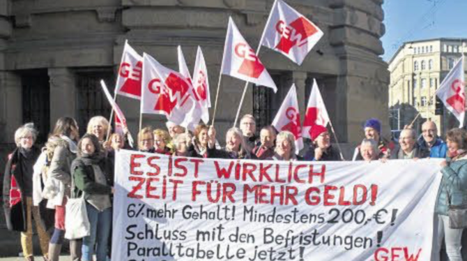 Nachdem am Montag in Stuttgart rund 1200 Angestellte auf die Straße gegangen waren, soll der Warnstreik am Dienstag der letzte im Land sein, bevor die Gespräche in Potsdam fortgesetzt werden. (dpa)