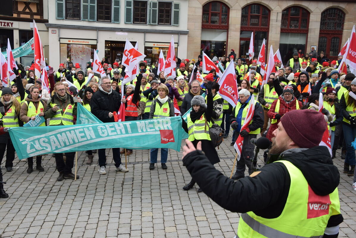 In der Stadt selbst war der Streiktag zu spüren: Unter anderem waren insgesamt 18 Kitas geschlossen, die Stadtbücherei hatte zu. Die Beschäftigten machten sich vormittags auf den Weg zur zentralen Kundgebung. Rund 500 Menschen zählten die Veranstalter am Ende. Auch die Schätzung der Polizei lagen in einem ähnlichen Bereich.
