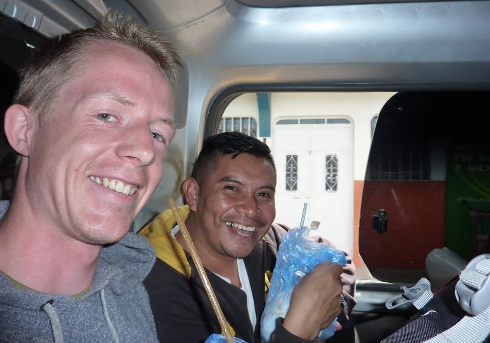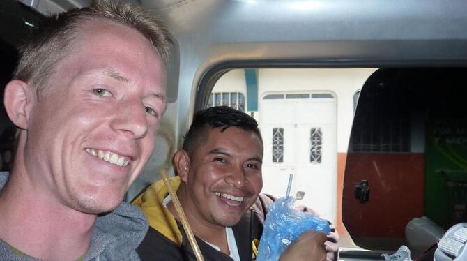 Der Gomaringer Schlagzeuger Achim Blech mit Edras Nehemías Patá Sirín in Guatemala. FOTO: THANNER
